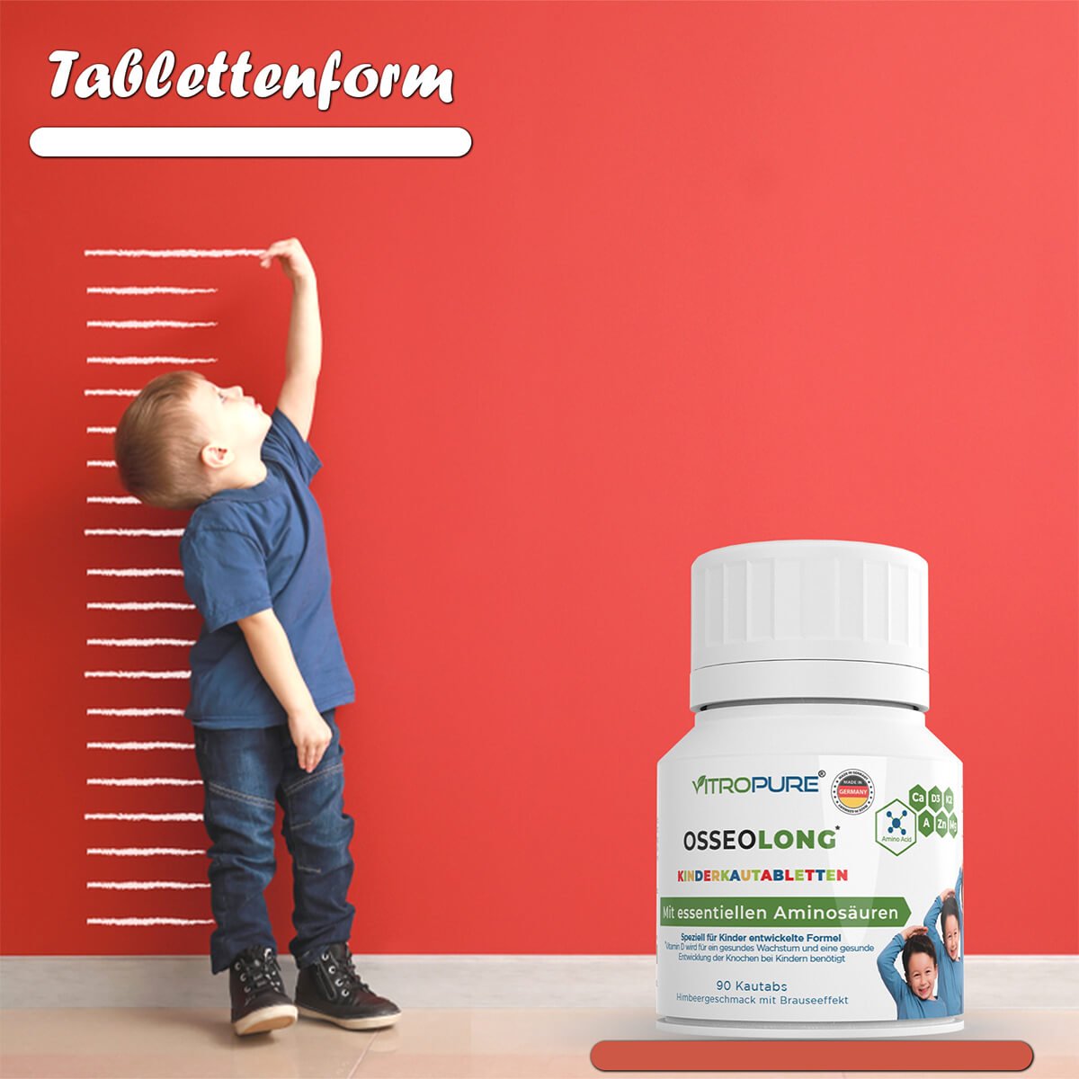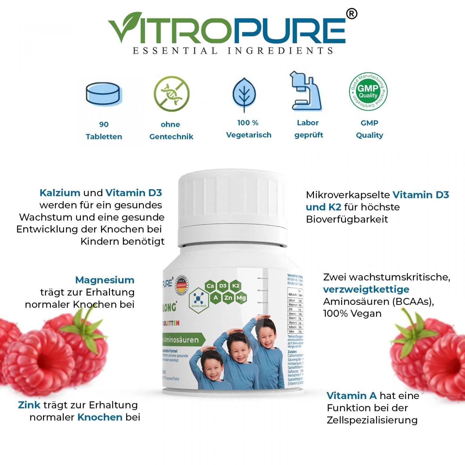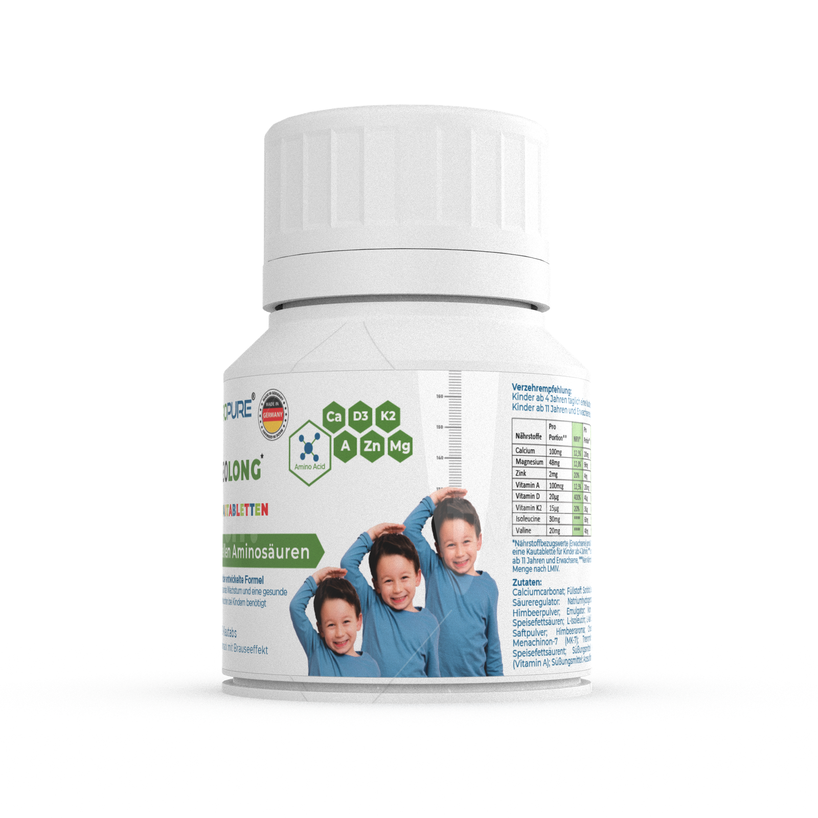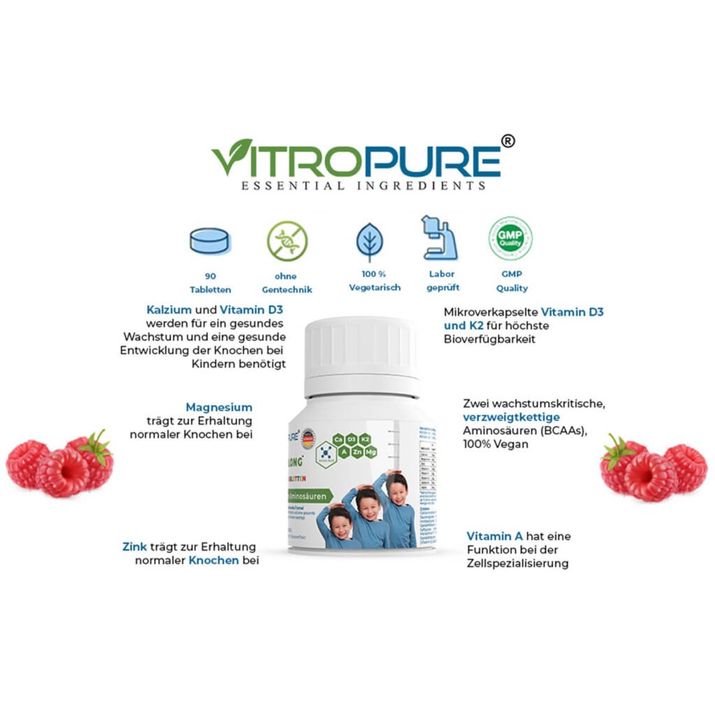 ✅ Erste Kautabletten für Kinder mit BCAAs, Kalzium, Magnesium, Zink, Vitamin K2, Vitamin A & Vitamin D3 zur Unterstützung der Knochenentwicklung – Made in Germany.