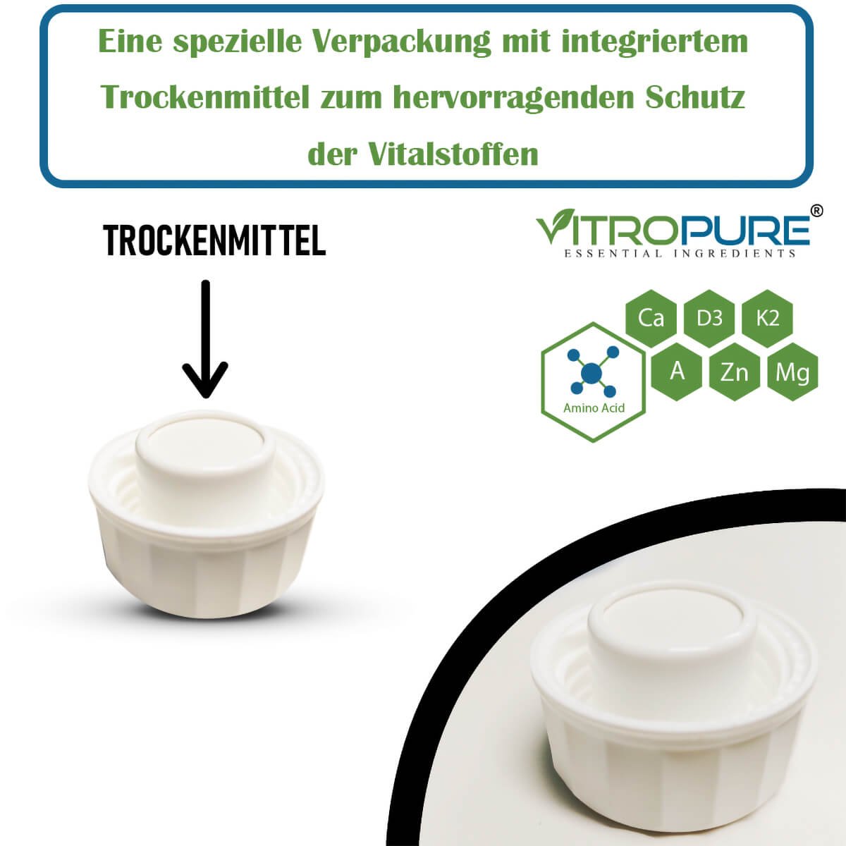 ✅ Effektive Verpackung mit integriertem Trockenmittel für sicheren Schutz der Vitalstoffe statt handelsüblicher Dosen